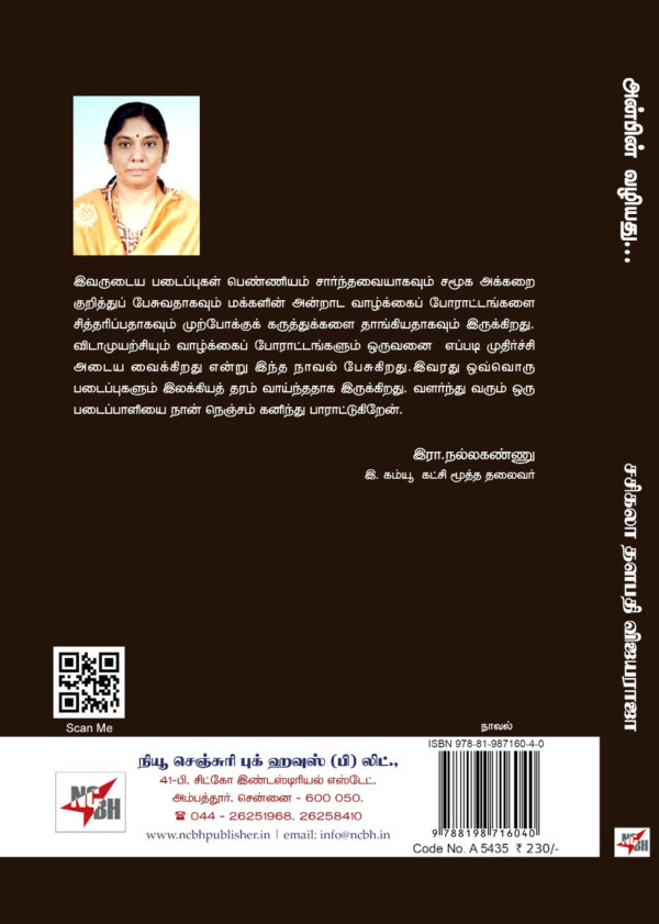 | Book Name: Anbin Vazhiyathu Regional Name: அன்பின் வழியது … நாவல் Author: சசிகலா தளபதி விஜயராஜா Edition: 1st Edition ISBN: 978-81-987160-4-0 Category: Novel Binding: Paper Binding Language: Tamil Publishing Year: 2025 Pages: 288 Code No: A5435 |