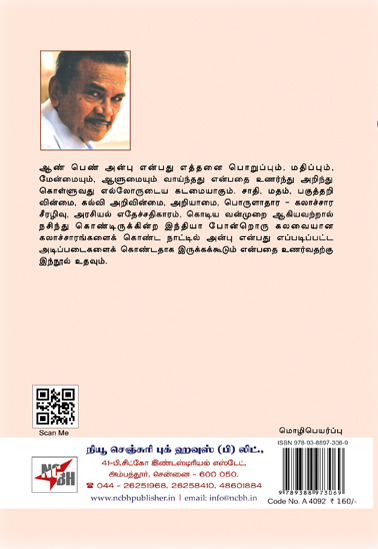 ஆண் பெண் அன்பு என்பது எத்தனை பொறுப்பும், மதிப்பும், மேன்மையும், ஆளுமையும் வாய்ந்தது என்பதை உணர்ந்து அறிந்து கொள்ளுவது எல்லோருடைய கடமையாகும். சாதி, மதம், பகுத்தறி வின்மை, கல்வி அறிவின்மை, அறியாமை, பொருளாதார – கலாச்சார சீரழிவு, அரசியல் எதேச்சதிகாரம், கொடிய வன்முறை ஆகியவற்றால் நசிந்து கொண்டிருக்கின்ற இந்தியா போன்றொரு கலவையான கலாச்சாரங்களைக் கொண்ட நாட்டில் அன்பு என்பது எப்படிப்பட்ட அடிப்படைகளைக் கொண்டதாக இருக்கக்கூடும் என்பதை உணர்வதற்கு இந்நூல் உதவும்.