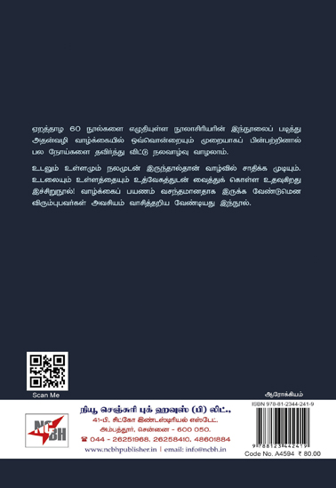 ஏறத்தாழ 60 நூல்களை எழுதியுள்ள நூலாசிரியரின் இந்நூலைப் படித்து அதன்வழி வாழ்க்கையில் ஒவ்வொன்றையும் முறையாகப் பின்பற்றினால் பல நோய்களை தவிர்த்து விட்டு நலவாழ்வு வாழலாம்.