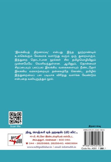 ‘இலக்கியத் திறனாய்வு’ என்பது இந்த நூற்றாண்டில் உலகெங்கும் வேகமாக வளர்ந்து வரும் ஒரு துறையாகும். இத்துறை தொடர்பான நூல்கள் சில தமிழ்மொழியிலும் முன்னமேயே வெளிவந்துள்ளன. ஆயினும், தொன்மைச் சிறப்பையும் பலப்பல இலக்கிய வகைகளையும் நீண்டதோர் இலக்கிய வரலாற்றையும் தன்னகத்தே கொண்ட தமிழில் இத்துறையைப் பல படியாக விரித்து வளர்க்க வேண்டும் என்பதை வலியுறுத்தும் நூல்.