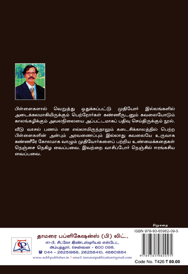 பிள்ளைகளால் வெறுத்து ஒதுக்கப்பட்டு முதியோர் இல்லங்களில் அடைக்கலமாகியிருக்கும் பெற்றோர்கள் கண்ணீருடனும் கவலையோடும் காலங்கழிக்கும் அவலநிலையை அப்பட்டமாகப் பதிவு செய்திருக்கும் நூல். வீடு வாசல் பணம் என எல்லாமிருந்தாலும் கடைசிக்காலத்தில் பெற்ற பிள்ளைகளின் அன்பும் அரவணைப்பும் இல்லாது கவலையே உருவாக கண்ணீரே கோலமாக வாழும் முதியோர்களைப் பற்றிய உண்மைக்கதைகள் நெஞ்சை நெகிழ வைப்பவை. இவற்றை வாசிப்போர் நெஞ்சில் ஈரங்கசிய வைப்பவை.