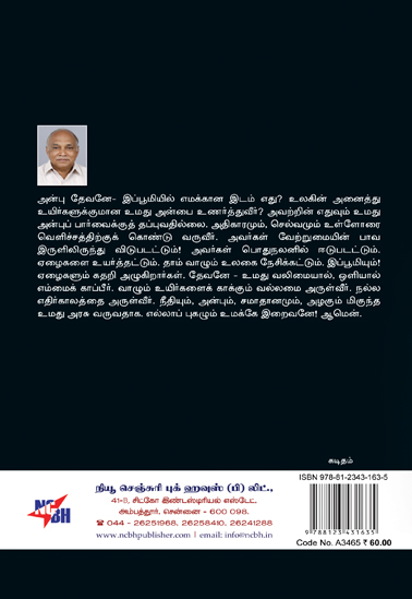அவற்றின் எதுவும் உமது அன்புப் பார்வைக்குத் தப்புவதில்லை. அதிகாரமும், செல்வமும் உள்ளோரை வெளிச்சத்திற்குக் கொண்டு வருவீர். அவர்கள் வேற்றுமையின் பாவ இருளிலிருந்து விடுபடட்டும்! அவர்கள் பொதுநலனில் ஈடுபடட்டும். ஏழைகளை உயர்த்தட்டும், தாம் வாழும் உலகை நேசிக்கட்டும், இப்பூமியும்! ஏழைகளும் கதறி அழுகிறார்கள். தேவனே – உமது வலிமையால், ஒளியால் எம்மைக் காப்பீர். வாழும் உயிர்களைக் காக்கும் வல்லமை அருள்வீர். நல்ல எதிர்காலத்தை அருள்வீர், நீதியும், அன்பும், சமாதானமும், அழகும் மிகுந்த உமது அரசு வருவதாக. எல்லாப் புகழும் உமக்கே இறைவனே!