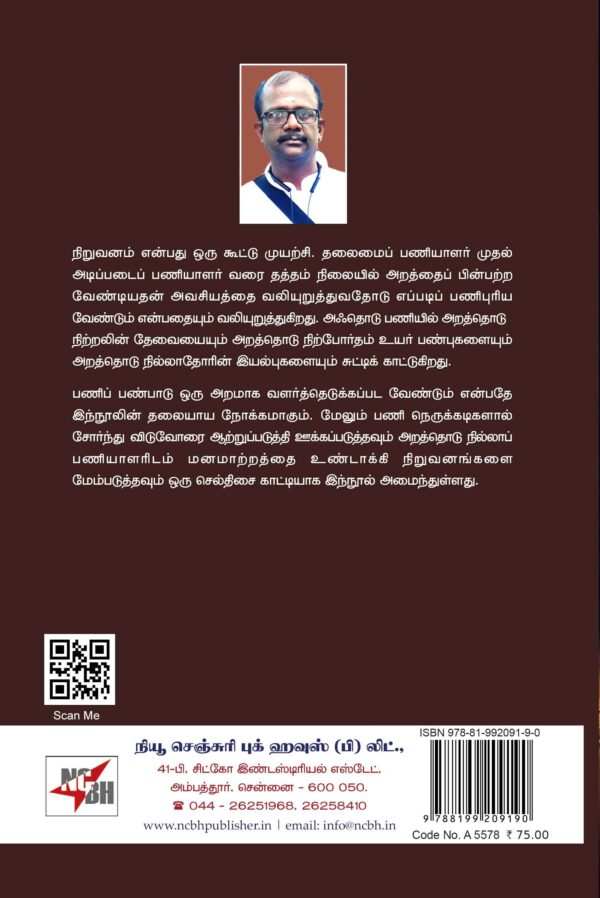 பணிப் பண்பாடு ஒரு அறமாக வளர்த்தெடுக்கப்பட வேண்டும் என்பதே இந்நூலின் தலையாய நோக்கமாகும். மேலும் பணி நெருக்கடிகளால் சோர்ந்து விடுவோரை ஆற்றுப்படுத்தி ஊக்கப்படுத்தவும் அறத்தொடு நில்லாப் பணியாளரிடம் மனமாற்றத்தை உண்டாக்கி நிறுவனங்களை மேம்படுத்தவும் ஒரு செல்திசை காட்டியாக இந்நூல் அமைந்துள்ளது.