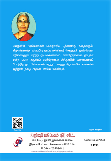 பயனுள்ள அறிவுரைகள் பொருந்திய பதினைந்து கதைகளும், சிறுவர்களுக்கு நல்லறிவு புகட்டி நன்னெறி செலுத்தத் தூண்டுவன. எதிர்காலத்தில் சிறந்த குடிமக்களாகவும், சான்றோராகவும் திகழ்வர் என்ற பயன் கருதியும் பெற்றோர்கள் இந்நூலின் அருமையைப் போற்றித் தம் பிள்ளைகள் கற்றுப் பயனுற சிறார்களின் கைகளில் இந்நூல் தவழ ஆவன செய்ய வேண்டும்.