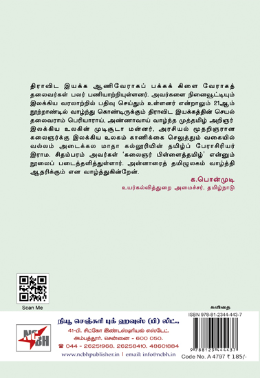 திராவிட இயக்க ஆணிவேராகப் பக்கக் கிளை வேராகத் தலைவர்கள் பலர் பணியாற்றியுள்ளனர். அவர்களை நினைவூட்டியும் இலக்கிய வரலாற்றில் பதிவு செய்தும் உள்ளனர் என்றாலும் 21ஆம் நூற்றாண்டில் வாழ்ந்து கொண்டிருக்கும் திராவிட இயக்கத்தின் செயல் தலைவராம் பெரியாராய், அண்ணாவாய் வாழ்ந்த முத்தமிழ் அறிஞர் இலக்கிய உலகின் முடிசூடா மன்னர், அரசியல் மூதறிஞரான கலைஞர்க்கு இலக்கிய உலகம் காணிக்கை செலுத்தும் வகையில் வல்லம் அடைக்கல மாதா கல்லூரியின் தமிழ்ப் பேராசிரியர் இராம. சிதம்பரம் அவர்கள் ‘கலைஞர் பிள்ளைத்தமிழ்’ என்னும் நூலைப் படைத்தளித்துள்ளார். அன்னாரைத் தமிழுலகம் வாழ்த்தி ஆதரிக்கும் என வாழ்த்துகின்றேன்.