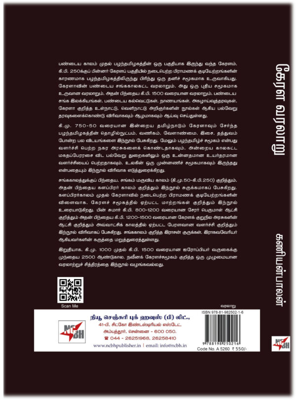 இறுதியாக, கி.மு. 1000 முதல் கி.பி. 1500 வரையான ஐரோப்பியர் வருகைக்கு முந்தைய 2500 ஆண்டுகால, நவீனக் கேரளச்சமூகம் குறித்த ஒரு முழுமையான வரலாற்றுச் சித்திரத்தை இந்நூல் வழங்கவல்லது.