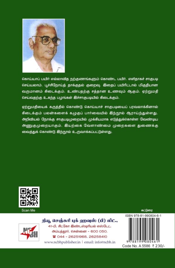 கொய்யாப் பயிர் எல்லாவித நற்குணங்களும் கொண்ட பயிர். எளிதாகச் சாகுபடி செய்யலாம். பூச்சிநோய்த் தாக்குதல் குறைவு. இதைப் பயிரிட்டால் மிகுதியான வருமானம் கிடைக்கும். உண்பதற்கு சத்தான உணவும் ஆகும். ஏற்றுமதி செய்வதற்கு உகந்த பழங்கள் இச்சாகுபடியில் கிடைக்கும். ஏற்றுமதியைக் கருத்தில் கொண்டு கொய்யாச் சாகுபடியைப் பரவலாக்கினால் கிடைக்கும் பலன்களைக் கழுகுப் பார்வையில் இந்நூல் ஆராய்ந்துள்ளது. அறிவியல் நோக்கு சாகுபடிமுறையில் முக்கியமாக எடுத்துக்கொள்ள வேண்டிய அணுகுமுறையாகும். இயற்கை வேளாண்மை முறைகளை துணைக்கு வைத்துக் கொண்டு இந்நூல் உருவாக்கப்பட்டுள்ளது.