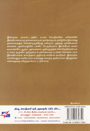 இன்றைய காலகட்டத்தில் உலக மொழிகளின் வரிசையில் இன்றியமையாத தன்மையையும் தளத்தையும் தமிழ்மொழியானது தக்கவைத்துக் கொண்டிருக்கிறது என்றால் அதற்கு முக்கியமான காரணம் அம்மொழியில் பல்கிப் பெருகியுள்ள இலக்கியக் கலை வடிவங்களே ஆகும். அவ்வாறான அறிவுறுத்தல் செல்நெறிகளையும் உலகம் தழுவிய ஒற்றுமை உணர்வையும் உரக்கச் சொன்ன சங்க இலக்கியங்கள் காலத்தால் அழியாத காவியச் சுவடுகள். இவற்றில் காலமெனும் வலிய கரம் வரைந்து வைத்த ஓவியங்கள் இந்நூலில் கண்களுக்கு விருந்தாக்கப்பட்டுள்ளன.