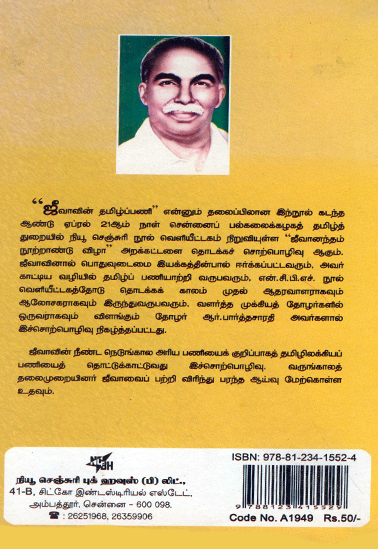 ஜீவாவின் தமிழ்ப்பணி” என்னும் தலைப்பிலான இந்நூல் கடந்த ஆண்டு ஏப்ரல் 21ஆம் நாள் சென்னைப் பல்கலைக்கழகத் தமிழ்த் துறையில் நியூ செஞ்சுரி நூல் வெளியீட்டகம் நிறுவியுள்ள “ஜீவானந்தம் நூற்றாண்டு விழா’ அறக்கட்டளை தொடக்கச் சொற்பொழிவு ஆகும். ஜீவாவினால் பொதுவுடைமை இயக்கத்தின்பால் ஈர்க்கப்பட்டவரும், அவர் காட்டிய வழியில் தமிழ்ப் பணியாற்றி வருபவரும், என்.சி.பி.எச். நூல் வெளியீட்டகத்தோடு தொடக்கக் காலம் முதல் ஆதரவாளராகவும் ஆலோசகராகவும் இருந்துவருபவரும். வளர்த்த முக்கியத் தோழர்களில் ஒருவராகவும் விளங்கும் தோழர் ஆர்.பார்த்தசாரதி அவர்களால் இச்சொற்பொழிவு நிகழ்த்தப்பட்டது.