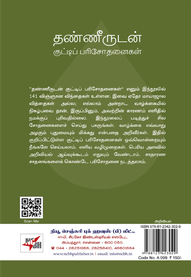 “தண்ணீருடன் குட்டிப் பரிசோதனைகள்” எனும் இந்நூலில் 141 விஞ்ஞான விந்தைகள் உள்ளன. இவை ஏதோ மாயாஜால் வித்தைகள் அல்ல; எல்லாம் அன்றாட வாழ்க்கையில் நிகழ்பவை தான்.