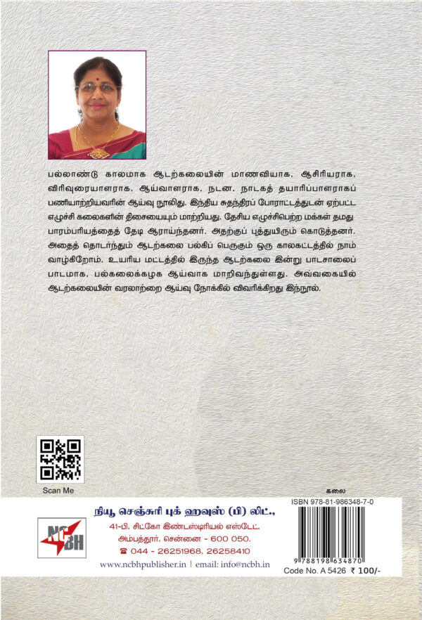 பல்லாண்டு காலமாக ஆடற்கலையின் மாணவியாக, ஆசிரியராக, விரிவுரையாளராக, ஆய்வாளராக, நடன, நாடகத் தயாரிப்பாளராகப் பணியாற்றியவரின் ஆய்வு நூலிது. இந்திய சுதந்திரப் போராட்டத்துடன் ஏற்பட்ட எழுச்சி கலைகளின் திசையையும் மாற்றியது. தேசிய எழுச்சிபெற்ற மக்கள் தமது பாரம்பரியத்தைத் தேடி ஆராய்ந்தனர். அதற்குப் புத்துயிரும் கொடுத்தனர். அதைத் தொடர்ந்தும் ஆடற்கலை பல்கிப் பெருகும் ஒரு காலகட்டத்தில் நாம் வாழ்கிறோம். உயரிய மட்டத்தில் இருந்த ஆடற்கலை இன்று பாடசாலைப் பாடமாக, பல்கலைக்கழக ஆய்வாக மாறிவந்துள்ளது. அவ்வகையில் ஆடற்கலையின் வரலாற்றை ஆய்வு நோக்கில் விவரிக்கிறது இந்நூல்.