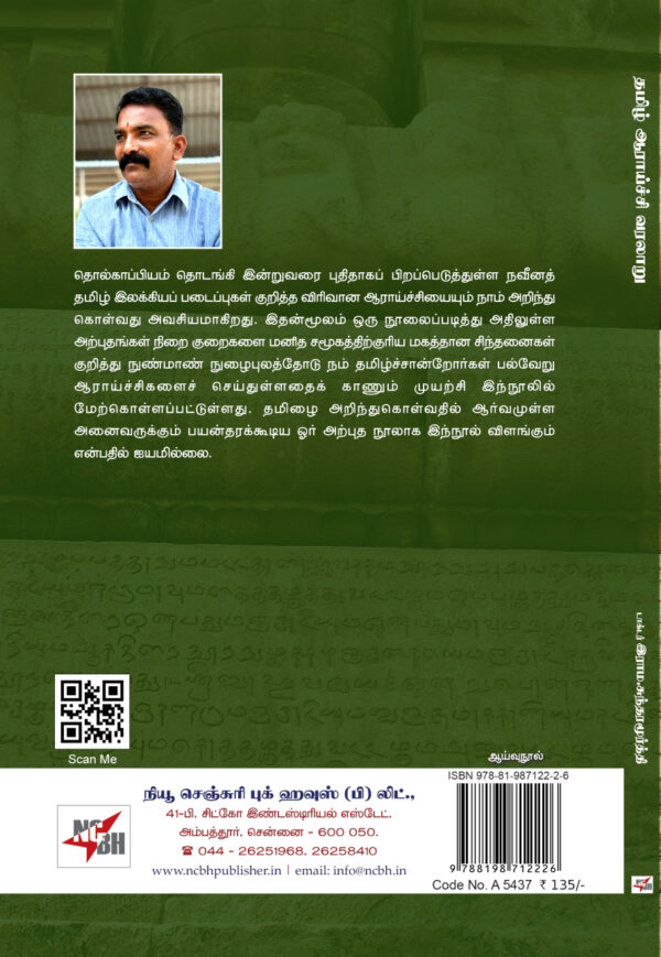தொல்காப்பியம் தொடங்கி இன்றுவரை புதிதாகப் பிறப்பெடுத்துள்ள நவீனத் தமிழ் இலக்கியப் படைப்புகள் குறித்த விரிவான ஆராய்ச்சியையும் நாம் அறிந்து கொள்வது அவசியமாகிறது. இதன்மூலம் ஒரு நூலைப்படித்து அதிலுள்ள அற்புதங்கள் நிறை குறைகளை மனித சமூகத்திற்குரிய மகத்தான சிந்தனைகள் குறித்து நுண்மாண் நுழைபுலத்தோடு நம் தமிழ்ச்சான்றோர்கள் பல்வேறு ஆராய்ச்சிகளைச் செய்துள்ளதைக் காணும் முயற்சி இந்நூலில் மேற்கொள்ளப்பட்டுள்ளது. தமிழை அறிந்துகொள்வதில் ஆர்வமுள்ள அனைவருக்கும் பயன்தரக்கூடிய ஓர் அற்புத நூலாக இந்நூல் விளங்கும் என்பதில் ஐயமில்லை.