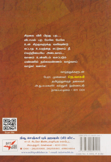 சிறகை விரி பிறகு பற…. விடாமல் பற மேலே மேலே உன் சிறகுகளுக்கு வலிவுண்டு எட்டாத உயரத்தை எட்டுவாய் நீ வெற்றியையே அடைவாய்…