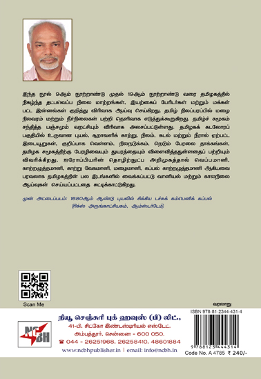 இந்த நூல் 9ஆம் நூற்றாண்டு முதல் 19ஆம் நூற்றாண்டு வரை தமிழகத்தில் நிகழ்ந்த தட்பவெப்ப நிலை மாற்றங்கள். இயற்கைப் பேரிடர்கள் மற்றும் மக்கள் பட்ட இன்னல்கள் குறித்து விரிவாக ஆய்வு செய்கிறது.