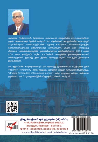 பல ஆராய்ச்சிக் கட்டுரைகளையும் 20 வரலாற்று நூல்களையும் எழுதியுள்ள இவர் History of Pondicherry என்ற நூலுக்கு முன்னாள் பிரதமர் நரசிம்மாராவிடமிருந்தும். ‘struggle for freedom of languages in india’ என்ற நூலுக்கு தமிழக முன்னாள் முதல்வர் டாக்டர் மு.கருணாநிதியிடமிருந்தும் பரிசுகள் பெற்றார்.