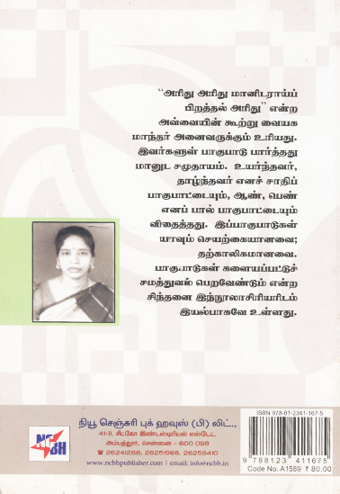 பாகுபாடுகள் களையப்பட்டுச் சமத்துவம் பெறவேண்டும் என்ற சிந்தனை இந்நூலாசிரியரிடம் இயல்பாகவே உள்ளது.