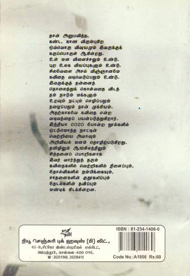 இவர் வார்த்துத் தரும் கவிதைகளில் வெற்றிகளில் திளைப்பும், தோல்விகளில் நம்பிக்கையும், சாதனைகளின் குதூகலிப்பும் தேடல்களின் தவிப்பும் மண்டிக் கிடக்கின்றன.