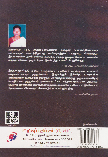 முனைவர் கோ. சந்தனமாரியம்மாள் நன்னூற் சொல்லதிகாரத்தை எளிமையுறப் படைத்திருப்பது வரவேற்கத்தக்க பயனுடை செயலாகும். இவ்வுரையின் அணி எளிமை என்பதே. எத்தகு ஐயமும் தோன்றா வகையில் கருத்து விளக்கம் தரும் திறன் இவரிடத்து காணப் பெறுகின்றது.