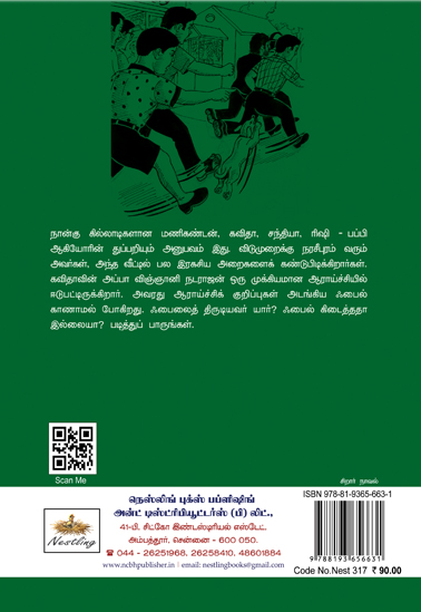 நான்கு கில்லாடிகளான மணிகண்டன், கவிதா, சந்தியா, ரிஷி * பப்பி ஆகியோரின் துப்பறியும் அனுபவம் இது. விடுமுறைக்கு நரசீபுரம் வரும் அவர்கள், அந்த வீட்டில் பல இரகசிய அறைகளைக் கண்டுபிடிக்கிறார்கள். கவிதாவின் அப்பா விஞ்ஞானி நடராஜன் ஒரு முக்கியமான ஆராய்ச்சியில் ஈடுபட்டிருக்கிறார். அவரது ஆராய்ச்சிக் குறிப்புகள் அடங்கிய ஃபைல் காணாமல் போகிறது. ஃபைலைத் திருடியவர் யார்? ஃபைல் கிடைத்ததா இல்லையா? படித்துப் பாருங்கள்.