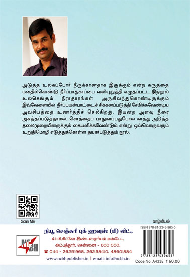 அடுத்த உலகப்போர் நீருக்கானதாக இருக்கும் என்ற கருத்தை மனதில்கொண்டு நீர்ப்பாதுகாப்பை வலியுறுத்தி எழுதப்பட்ட இந்நூல் உலகெங்கும் நீராதாரங்கள் அருகிவந்துகொண்டிருக்கும் இவ்வேளையில் நீர்ப்பயன்பாட்டைச் சிக்கனப்படுத்தி சேமிக்கவேண்டிய அவசியத்தை உணர்த்திச் செல்கிறது. இயன்ற அளவு நீரை