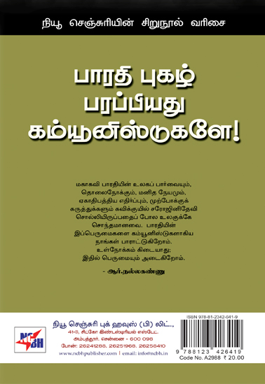 மகாகவி பாரதியின் உலகப் பார்வையும். தொலைநோக்கும், மனித நேயமும், ஏகாதிபத்திய எதிர்ப்பும். முற்போக்குக் கருத்துக்களும் கவிக்குயில் சரோஜினிதேவி சொல்லியிருப்பதைப் போல உலகுக்கே சொந்தமானவை. பாரதியின் இப்பெருமைகளை கம்யூனிஸ்டுகளாகிய நாங்கள் பாராட்டுகிறோம். உள்நோக்கம் கிடையாது; இதில் பெருமையும் அடைகிறோம்.பாரதி புகழ் பரப்பியது கம்யூனிஸ்டுகளே!