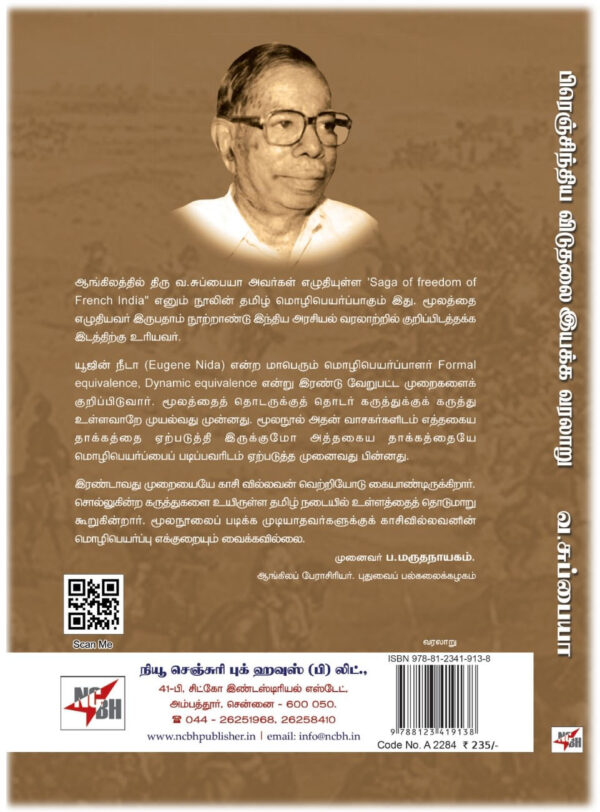 ஆங்கிலத்தில் திரு வ.சுப்பையா அவர்கள் எழுதியுள்ள “Saga of freedom of French India” எனும் நூலின் தமிழ் மொழிபெயர்ப்பாகும் இது. மூலத்தை எழுதியவர் இருபதாம் நூற்றாண்டு இந்திய அரசியல் வரலாற்றில் குறிப்பிடத்தக்க இடத்திற்கு உரியவர்.