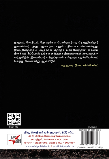 ஜாதகம், சோதிடம், தோஷங்கள் போன்றவற்றை தோலுரிக்கிறார் நூலாசிரியர். அது புதுவாழ்வு எனும் புதினமாக மிளிர்கின்றது. இப்புதினத்தைப் படித்தால் தோழர் பரமசிவத்தின் கையில் இருக்கும் தீப்பொறி உங்கள் குறிப்பாக இளைஞர்கள் கரங்களுக்கு வந்துவிடும். இளையோர் எரியூட்டினால் கண்மூடிப் பழக்கமெல்லாம் வெந்து வெண்ணீறு ஆகிவிடும். புது வாழ்வு