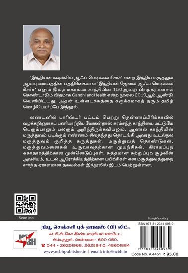 “இந்தியன் கவுன்சில் ஆஃப் மெடிக்கல் ரிசர்ச்” என்ற இந்திய மருத்துவ ஆய்வு மையத்தின் பத்திரிகையான ‘இந்தியன் ஜேனல் ஆஃப் மெடிக்கல் ரிசர்ச்’ எனும் இதழ் மகாத்மா காந்தியின் 150ஆவது பிறந்தநாளைக் கொண்டாடும் விதமாக Gandhi and Health என்ற நூலை 2019ஆம் ஆண்டு வெளியிட்டது. அதன் உள்ளடக்கத்தை சுருக்கமாகத் தகும் தமிழ் மொழிபெயர்ப்பே இந்நூல்.