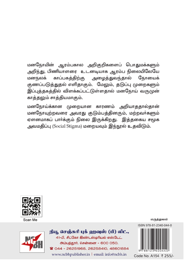 மனநோயின் ஆரம்பகால அறிகுறிகளைப் பொதுமக்களும் அறிந்து, பிணியாளரை உடனடியாக ஆரம்ப நிலையிலேயே மனநலக் காப்பகத்திற்கு அழைத்துவந்தால் நோயைக் குணப்படுத்துதல் எளிதாகும். மேலும், தடுப்பு முறைகளும் இப்புத்தகத்தில் விளக்கப்பட்டுள்ளதால் மனநோய் வருமுன் காத்தலும் சாத்தியமாகும்.