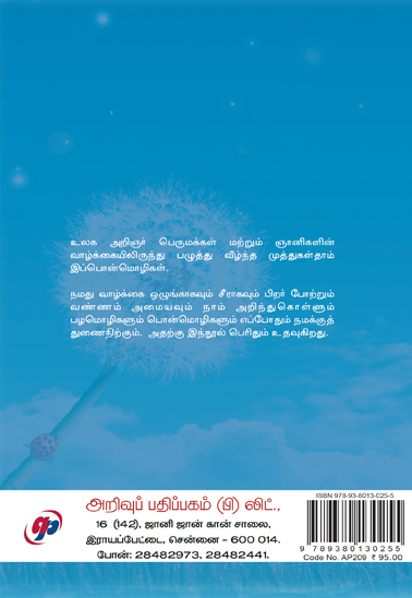 நமது வாழ்க்கை ஒழுங்காகவும் சீராகவும் பிறர் போற்றும் வண்ணம் அமையவும் நாம் அறிந்துகொள்ளும் பழமொழிகளும் பொன்மொழிகளும் எப்போதும் நமக்குத் துணைநிற்கும். அதற்கு இந்நூல் பெரிதும் உதவுகிறது.