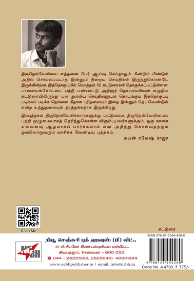 திருநெல்வேலியை எத்தனை பேர் ஆய்வு செய்தாலும் மீண்டும் மீண்டும் அதில் சொல்லப்படாத இன்னும் நிறைய செய்திகள் இருந்துகொண்டே இருக்கின்றன. இத்தொகுப்பில் மொத்தம் 32 கட்டுரைகள் தொகுக்கப்பட்டுள்ளன. பாளையங்கோட்டை பற்றி பண்பாட்டு அறிஞர் தொ.பரமசிவன் எழுதிய கட்டுரையிலிருந்து பல துல்லிய செய்திகளுடன் தொடங்கும் இத்தொகுப்பு படிக்கப் படிக்க நெல்லை மீதான புரிதலையும் இதை இன்னும் தேடவேண்டும் என்ற உந்துதலையும் தரத்தக்கதாக இருக்கிறது. இப்புத்தகம் திருநெல்வேலிக்காரர்களுக்கு மட்டுமல்ல, திருநெல்வேலியைப் பற்றி முழுமையாகத் தெரிந்துகொள்ள விரும்புபவர்களுக்கும், ஒரு ஊரை எவ்வளவு ஆழமாகப் பார்க்கலாம் என அறிந்து கொள்வதற்கும் ஒவ்வொருவரும் வாசிக்க வேண்டிய புத்தகம்.