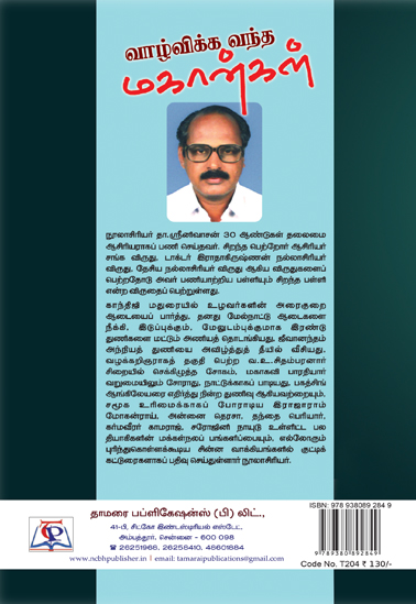 நூலாசிரியர் தா.ஸ்ரீனிவாசன் 30 ஆண்டுகள் தலைமை ஆசிரியராகப் பணி செய்தவர். சிறந்த பெற்றோர் ஆசிரியர் சாங்க விருது. டாக்டர் இராதாகிருஷ்ணன் நல்லாசிரியர் விருது. தேசிய நல்லாசிரியர் விருது ஆகிய விருதுகளைப் பெற்றதோடு அவர் பணியாற்றிய பள்ளியும் சிறந்த பள்ளி என்ற விருதைப் பெற்றுள்ளது.