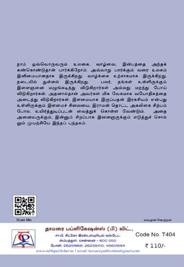 நாம் ஒவ்வொருவரும் உலகை, வாழ்வை. இன்பத்தை அந்தக் கண்கொண்டுதான் பார்க்கிறோம். அவ்வாறு பார்க்கும் வரை உலகம் இனிமையானதாக இருக்கிறது. வாழ்க்கை உற்சாகமாக இருக்கிறது. நடையில் துள்ளல் இருக்கிறது. பலர், தங்கள் உள்ளிருக்கும் இளைஞனை மழுங்கடித்து விடுகிறார்கள் அல்லது மறந்து போய் விடுகிறார்கள். அதனால்தான் அவர்கள் மிக வேகமாக வயோதிகத்தை அடைந்து விடுகிறார்கள். இளமையாக இருப்பதன் இரகசியம் என்பது உள்ளிருக்கும் இளமைச் சிலையை, இராமன் தொட்ட அகலிகை சிற்பம் போல, உயிர்த்துடிப்புடன் வைத்துக் கொள்ள வேண்டும். அதை அனைவருக்கும். இன்னும் சிறப்பாக இளைஞருக்கும் எடுத்துச் சொல் லும் முயற்சியே இந்தப் புத்தகம்.