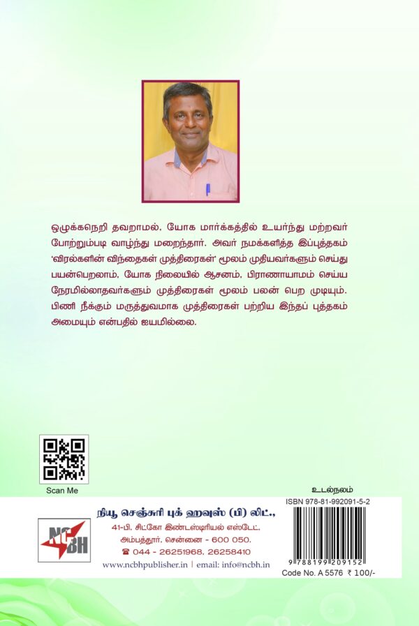 ஒழுக்கநெறி தவறாமல், யோக மார்க்கத்தில் உயர்ந்து மற்றவர் போற்றும்படி வாழ்ந்து மறைந்தார். அவர் நமக்களித்த இப்புத்தகம் ‘விரல்களின் விந்தைகள் முத்திரைகள் மூலம் முதியவர்களும் செய்து பயன்பெறலாம். யோக நிலையில் ஆசனம், பிராணாயாமம் செய்ய நேரமில்லாதவர்களும் முத்திரைகள் மூலம் பலன் பெற முடியும். பிணி நீக்கும் மருத்துவமாக முத்திரைகள் பற்றிய இந்தப் புத்தகம் அமையும் என்பதில் ஐயமில்லை.
