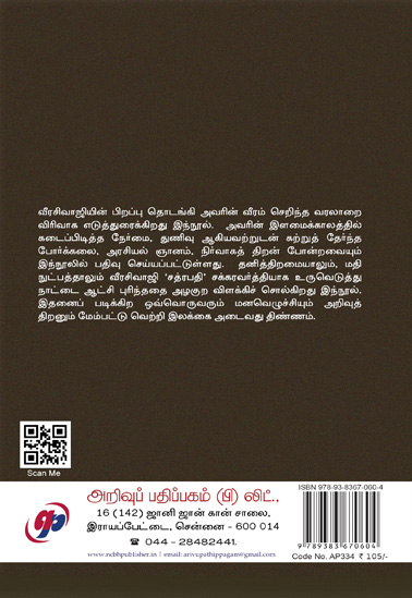 வீரசிவாஜியின் பிறப்பு தொடங்கி அவரின் வீரம் செறிந்த வரலாறை விரிவாக எடுத்துரைக்கிறது இந்நூல். அவரின் இளமைக்காலத்தில் கடைப்பிடித்த நேர்மை, துணிவு ஆகியவற்றுடன் கற்றுத் தேர்ந்த போர்க்கலை, அரசியல் ஞானம், நிர்வாகத் திறன் போன்றவையும் இந்நூலில் பதிவு செய்யப்பட்டுள்ளது. தனித்திறமையாலும், மதி நுட்பத்தாலும் வீரசிவாஜி ‘சத்ரபதி’ சக்கரவர்த்தியாக உருவெடுத்து நாட்டை ஆட்சி புரிந்ததை அழகுற விளக்கிச் சொல்கிறது இந்நூல், இதனைப் படிக்கிற ஒவ்வொருவரும் மனவெழுச்சியும் அறிவுத் திறனும் மேம்பட்டு வெற்றி இலக்கை அடைவது திண்ணம்.