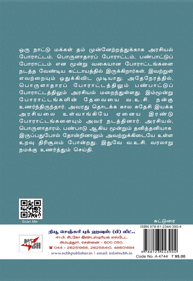 ஒரு நாட்டு மக்கள் தம் முன்னேற்றத்துக்காக அரசியல் போராட்டம், பொருளாதாரப் போராட்டம், பண்பாட்டுப் போராட்டம் என மூன்று வகையான போராட்டங்களை நடத்த வேண்டிய கட்டாயத்தில் இருக்கிறார்கள். இவற்றுள் எவற்றையும் ஒதுக்கிவிட முடியாது. அதேநேரத்தில், பொருளாதாரப் போராட்டத்திலும் பண்பாட்டுப் போராட்டத்திலும் அரசியல் மறைந்துள்ளது. இம்மூன்று போராட்டங்களின் தேவையை வ.உ.சி. நன்கு உணர்ந்திருந்தார். அவரது தொடக்க கால சுதேசி இயக்க அரசியலை உள்வாங்கியே ஏனைய இரண்டு போராட்டங்களையும் அவர் நடத்தினார். அரசியல்,