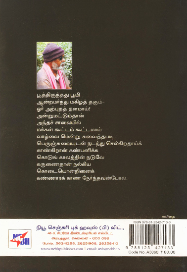 • பெருஞ்சுவையுடன் நடந்து செல்கிறதாய்க் காண்கிறான் கண்பனிக்க கொடுங் காலத்தின் நடுவேகருணைதான் நல்கிய கொடையொன்றினைக் கண்ணாரக் காண நேர்ந்தவன்போல்.