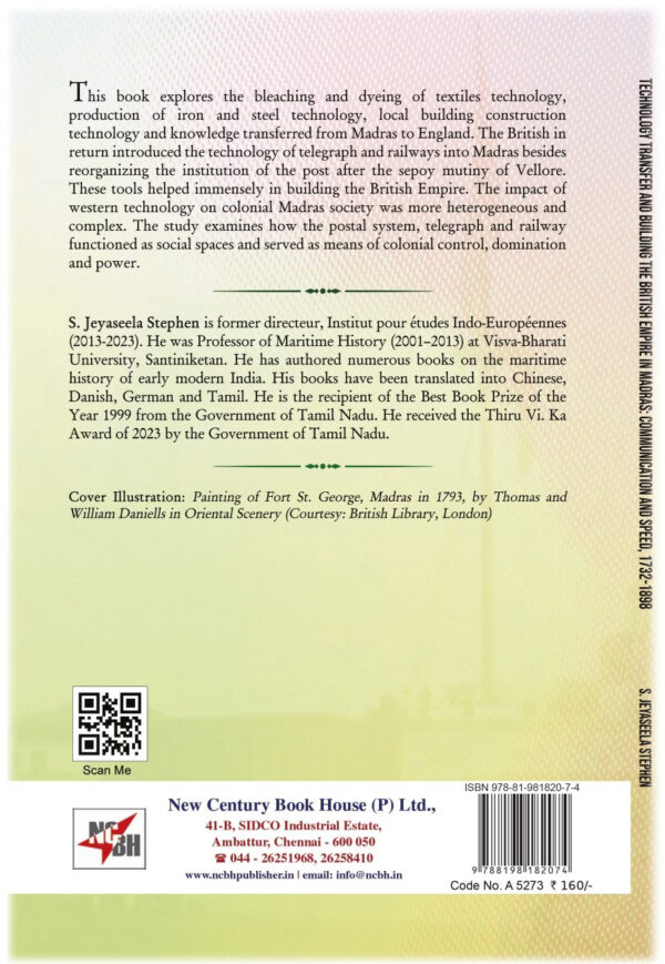This book explores the bleaching and dyeing of textiles technology, production of iron and steel technology, local building construction technology and knowledge transferred from Madras to England. The British in return introduced the technology of telegraph and railways into Madras besides reorganizing the institution of the post after the sepoy mutiny of Vellore. These tools helped immensely in building the British Empire. The impact of western technology on colonial Madras society was more heterogeneous and complex. The study examines how the postal system, telegraph and railway functioned as social spaces and served as means of colonial control, domination and power.