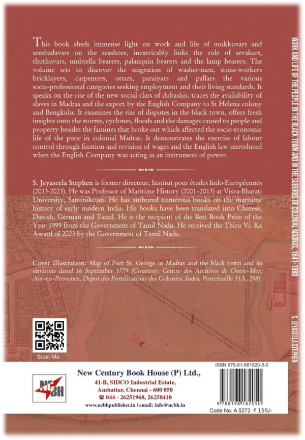 This book sheds immense light on work and life of mukkuvars and sembadavars on the seashore, inextricably links the role of sevakars, thuthuvars, umbrella bearers, palanquin bearers and the lamp bearers. The volume sets to discover the migration of washer-men, stone-workers bricklayers, carpenters, ottars, paraiyars and pallars the the various socio-professional categories seeking employment and their living standards. It speaks on the rise of the new social class of dubashis, traces the availability of slaves in Madras and the export by the English Company to St Helena colony and Bengkulu. It examines the rise of disputes in the black town, offers fresh insights onto the storms, cyclones, floods and the damages caused to people and property besides the famines that broke out which affected the socio-economic life of the poor in colonial Madras. It demonstrates the exercise of labour control through fixation and revision of wages and the English law introduced when the English Company was acting as an instrument of power.